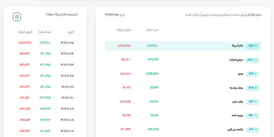نمای جدید بازار مرکز مبادله بدون تالار اول و دوم (نرخ حواله و اسکناس جایگزین شدند):