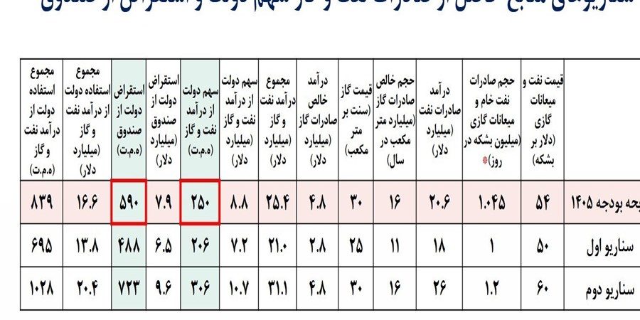 بر اساس جداول بودجه، سهم دولت از فروش نفت که به خزانه واریز میشود، 264 هزار میلیارد تومان در نظر گرفته شده است. با این حال، در بخش تأمین مالی و استقراض، رقمی معادل 590 هزار میلیارد تومان برداشت یا استقراض از صندوق توسعه ملی پیشبینی شده که بخش عمده آن به منابع نفتی وابسته است.